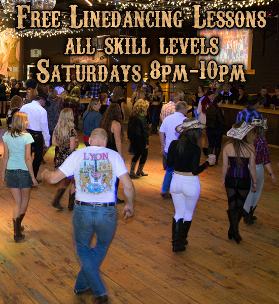 Free line dancing lessons Saturdays 8-10 PM, then DJs spin till 2:30 AM.